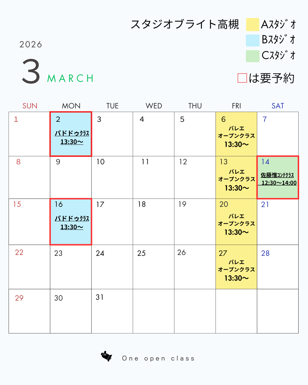 3月 コンテンポラリークラス 開催日